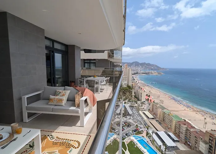 SUNSET CLIFFS boho style apartment lägenhet är ett boende på 99 m^2, som erbjuder sina gäster säsongsöppen utomhusbassäng och golfbana. Båt till Islote de Benidorm ligger 2 km bort och Cala Almadrava kan nås inom 10 minuters bilfärd.